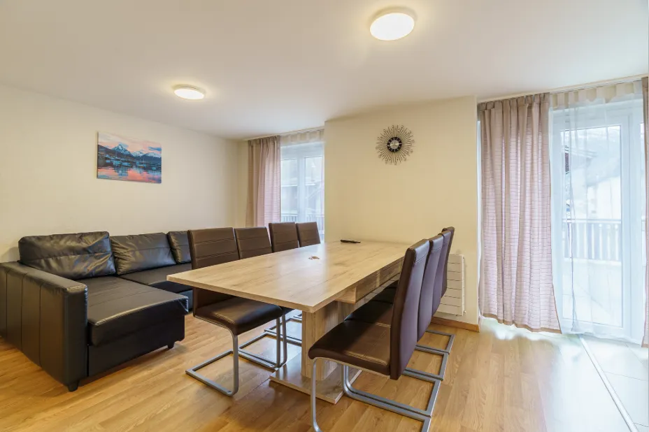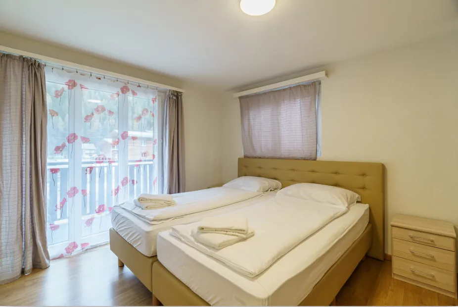 Ideal for Families & Groups This 100 m² apartment in Saas Grund comfortably fits up to 8 guests. With 3 double bedrooms and a sofa bed in the living room, it’s perfect for families or groups. Relax in the cozy living area with a dining table, sofa, flat-screen TV, and free Wi-Fi. The fully equipped kitchen has everything you need, and the balcony offers stunning mountain views. Bed linens, towels, and a bathroom with a shower and toilet are included. Non-smoking for a peaceful stay.